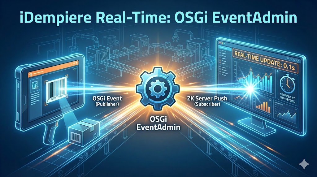 In this post, we will dive into how to solve “Server Push Delay” in iDempiere by moving from standard ZK EventQueues to a robust OSGi EventAdmin approach, achieving true sub-second updates across browser sessions.